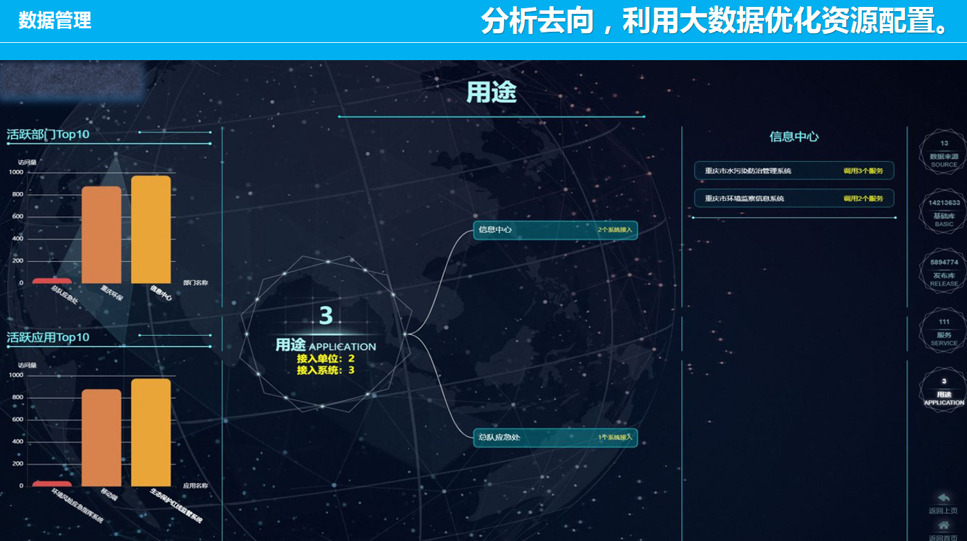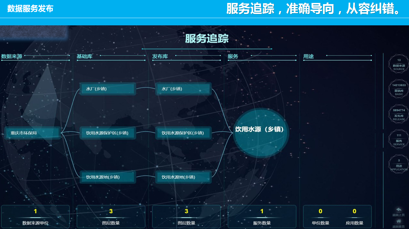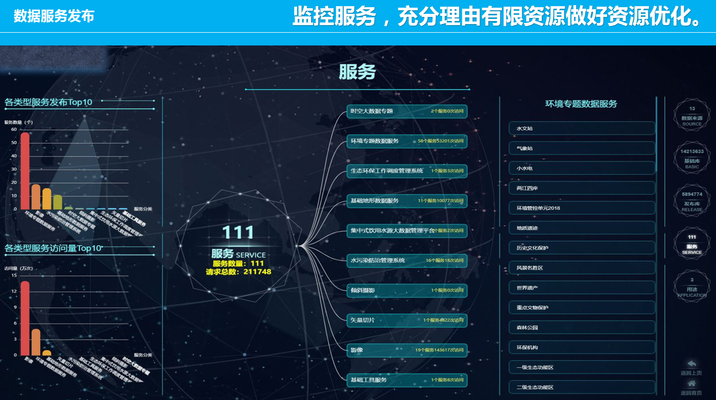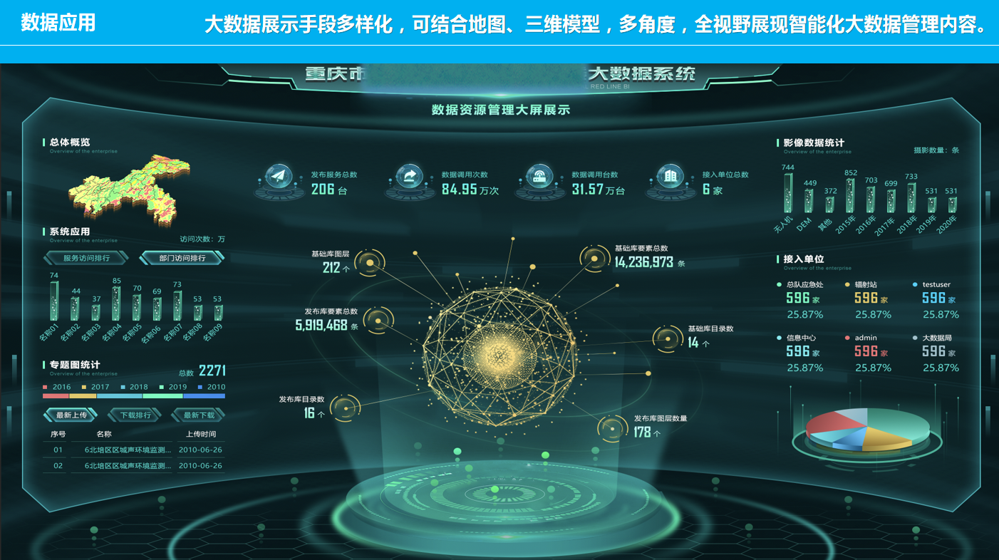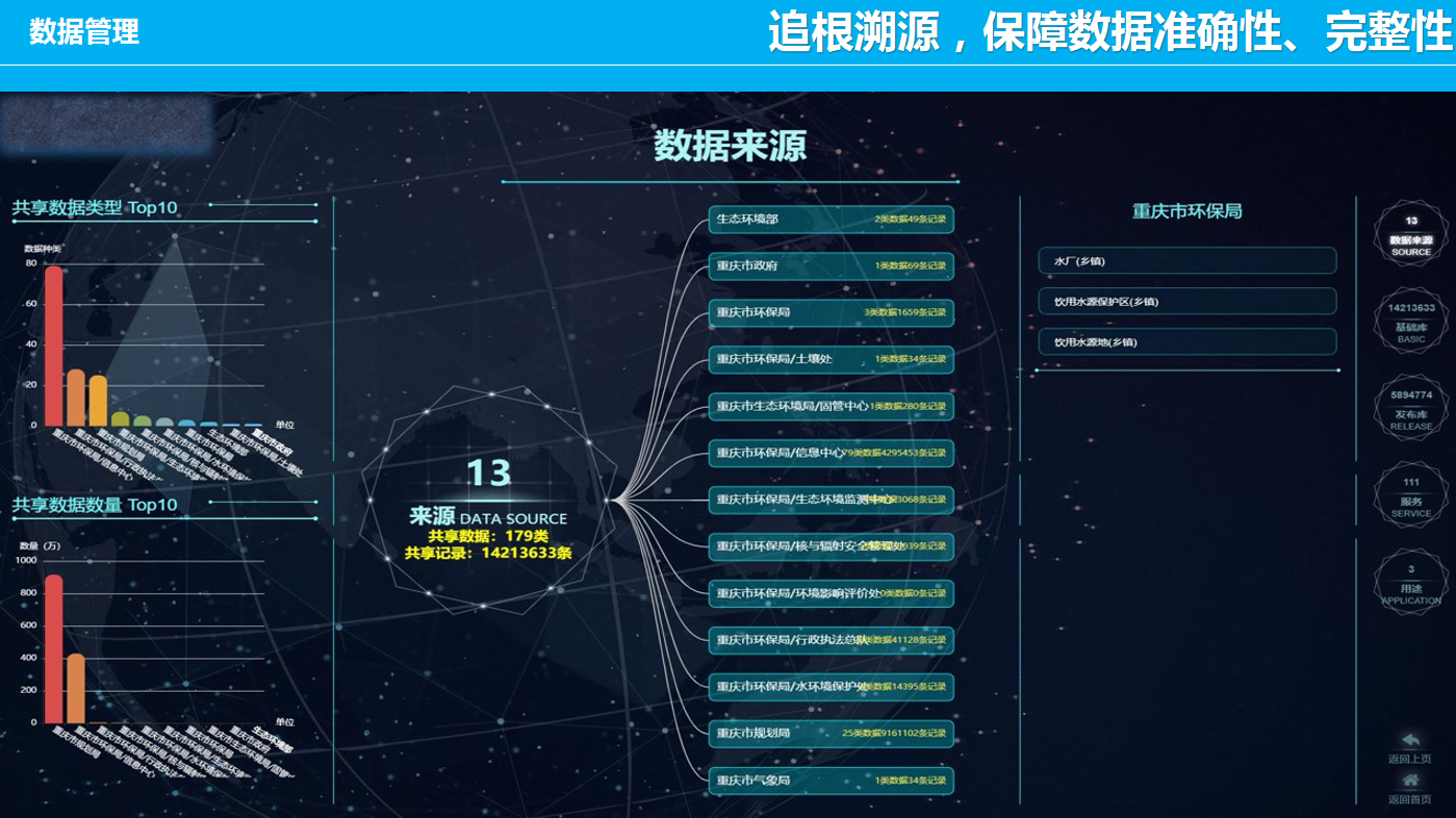 重慶數(shù)字城市科技有限公司開發(fā)研制的“生態(tài)環(huán)境大數(shù)據(jù)智能化平臺(tái)”包含了數(shù)據(jù)匯集、數(shù)據(jù)管理、數(shù)據(jù)服務(wù)發(fā)布、數(shù)據(jù)共享、數(shù)據(jù)應(yīng)用、數(shù)據(jù)展示幾個(gè)層級(jí)應(yīng)用,每個(gè)層級(jí)包含公司自行研發(fā)的業(yè)務(wù)邏輯模塊和算法模塊,且每個(gè)層級(jí)都擁有相應(yīng)的大數(shù)據(jù)展示頁面,能夠智能的進(jìn)行數(shù)據(jù)的抽取、清洗、校驗(yàn),并適應(yīng)多平臺(tái)終端應(yīng)用,是一套專門服務(wù)于生態(tài)環(huán)境領(lǐng)域多源、多種類數(shù)據(jù)匯集、管理、發(fā)布、共享和展示的一體化智慧環(huán)保解決方案。