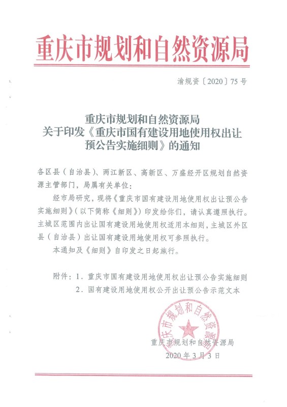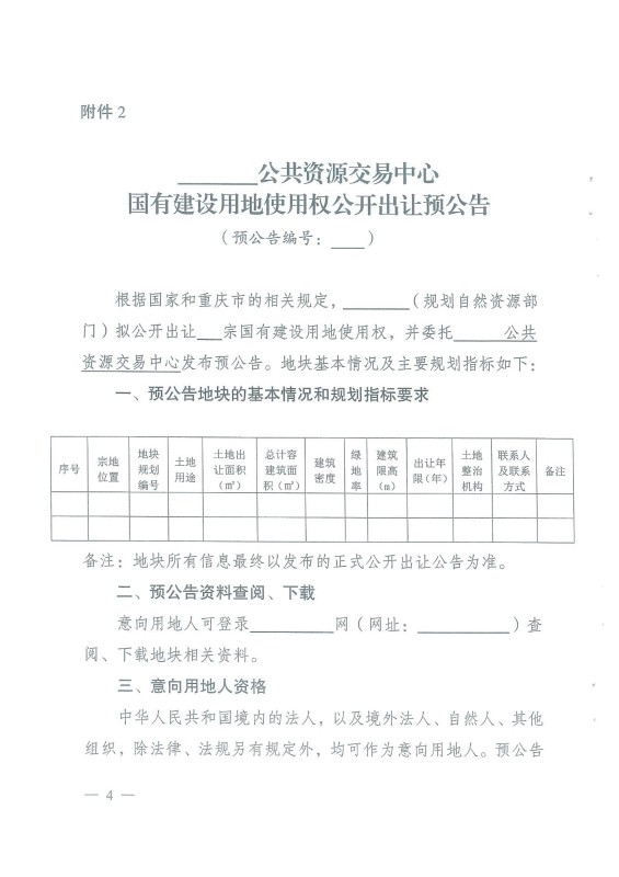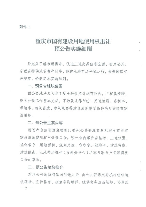 《重慶市國有建設(shè)用地使用權(quán)出讓預(yù)公告實(shí)施細(xì)則》